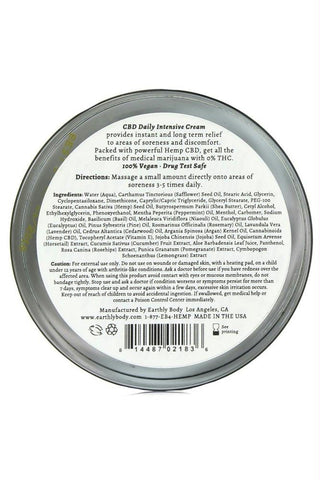 Enriched with a healthy dose of hemp oil, Earthly Body's CBD Daily Intensive Cream helps soothe, relax and relieve symptoms of muscle and joint pain. 1.7oz