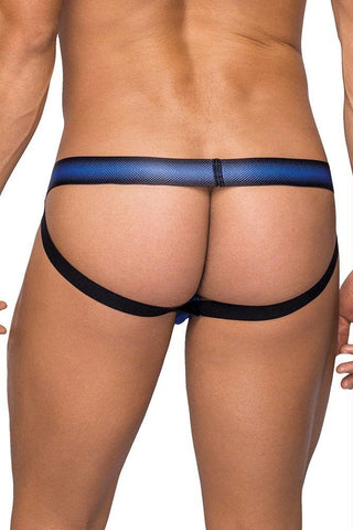 Suited for the daring, this navy blue jock leaves your backside baring it all. The comfortable dual action pouches keep you comfortable throughout your day. S/M
