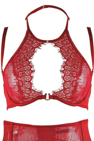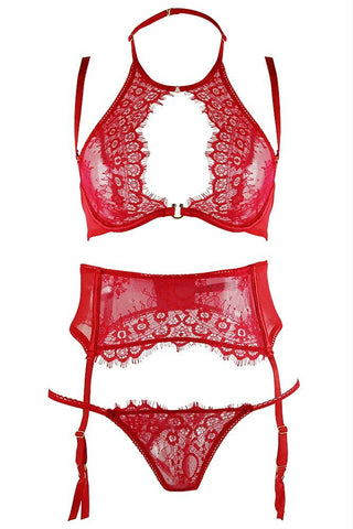 Ravishing Red Eyelash Lace Bra, Garter & Panty in M